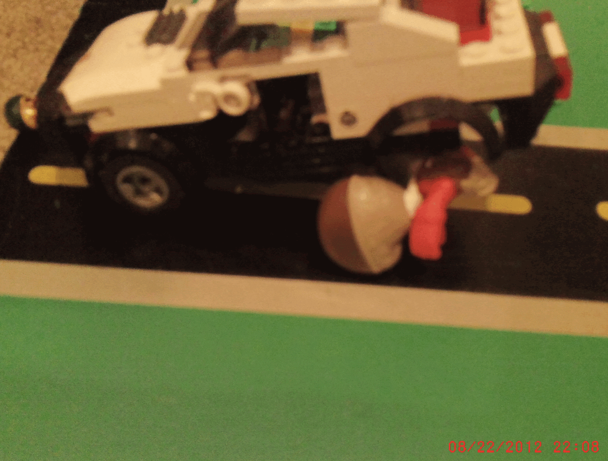 First frame I called animation. Lego on a playmat, a phone propped up for the next shot. The timestamp is on the photo, burned in red.