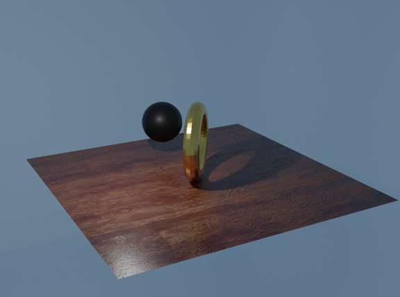 Before the cube was a cube. A black sphere, a gold ring, a wood-textured plane. The first thing I'd be willing to put on a slide.