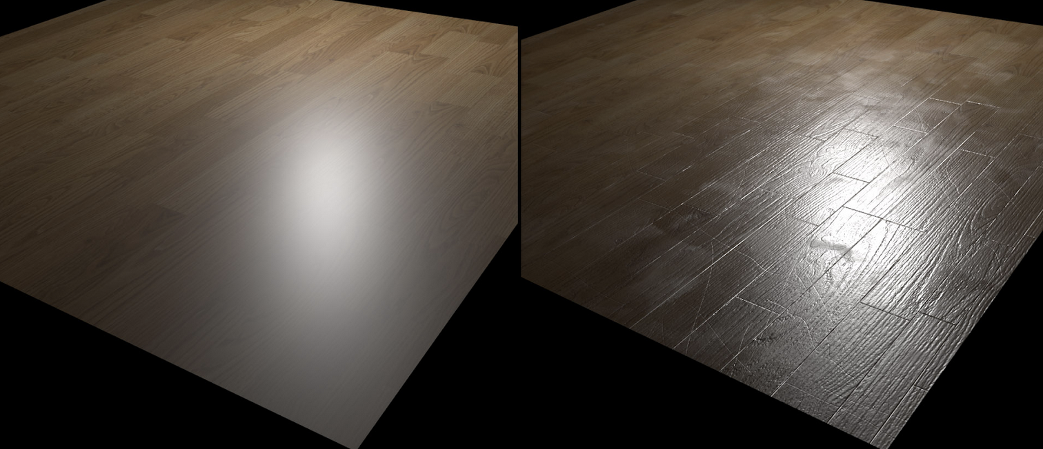 Same wood plank, two different node graphs. The flat one looked like a screensaver; the layered one looked like a floor.