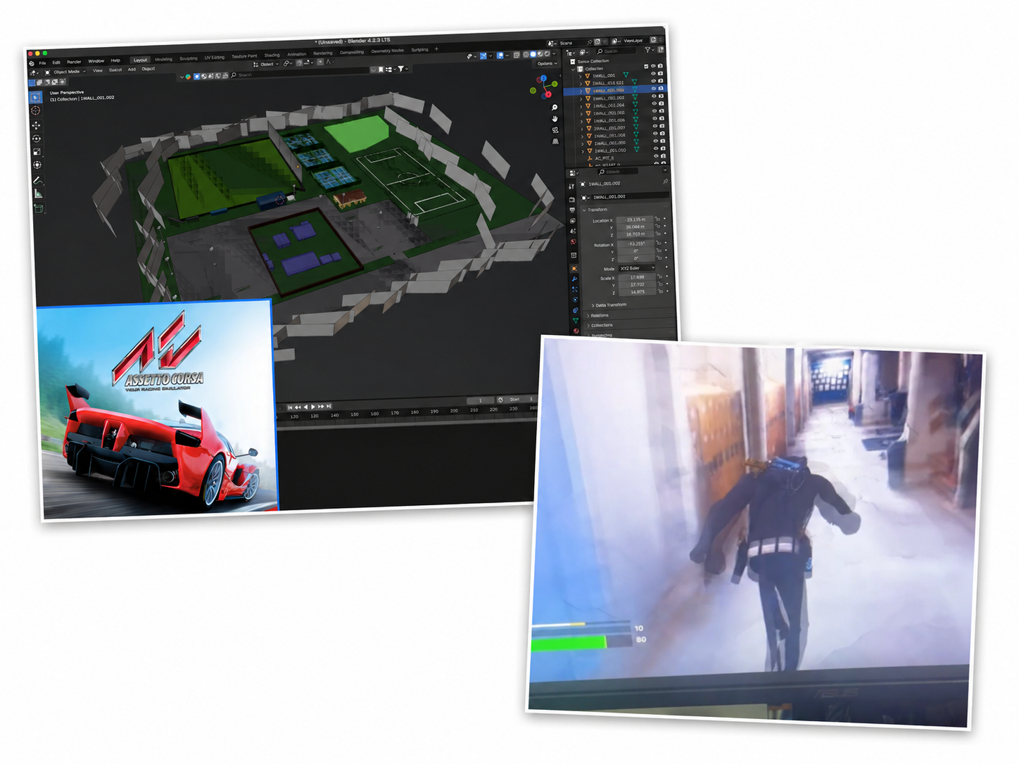 Stopped just rendering and started entering. Assetto Corsa for cars, Blender for the layout of an entire building, Fortnite Creative for a hallway you could run down.