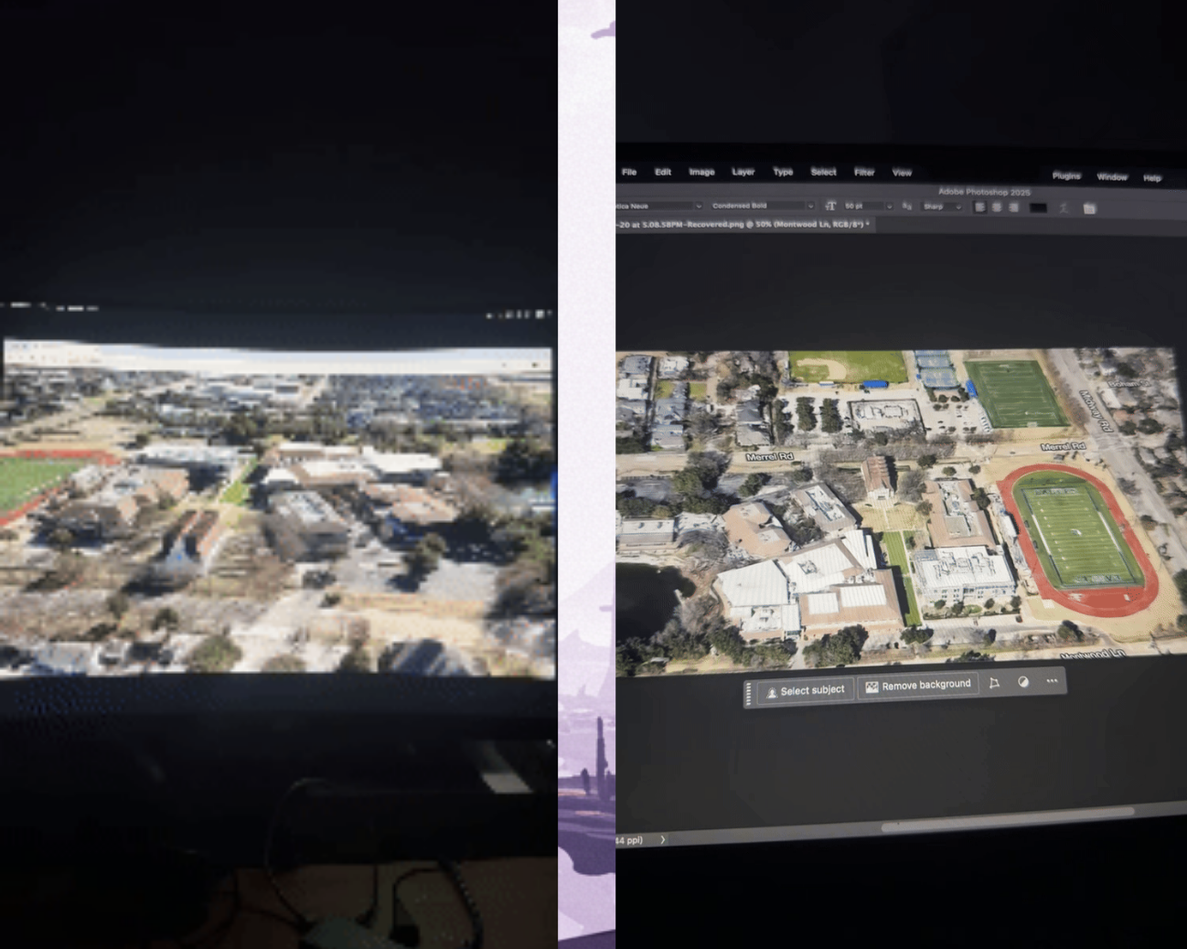 Gaussian splats on the way in. Photoshop with Remove Background quietly running on aerial campus shots. The pipeline is starting to include things that didn't exist when I started.